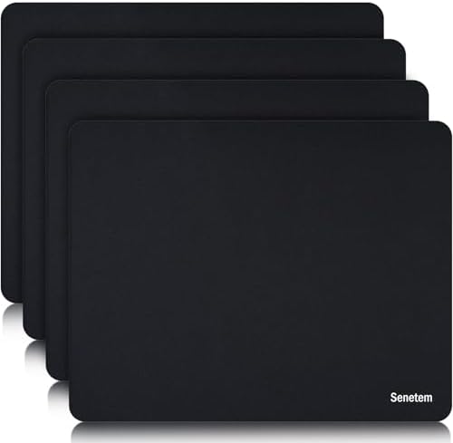 Senetem 4-Pack Mouse Pad, Ultra-Smooth Gaming Mousepad, Non-Slip Rubber Base, Washable Surface Fits Wired & Wireless Mouse – Perfect for Desk, Laptop, PC & Office, Small Portable, 11×8.6 in, Black